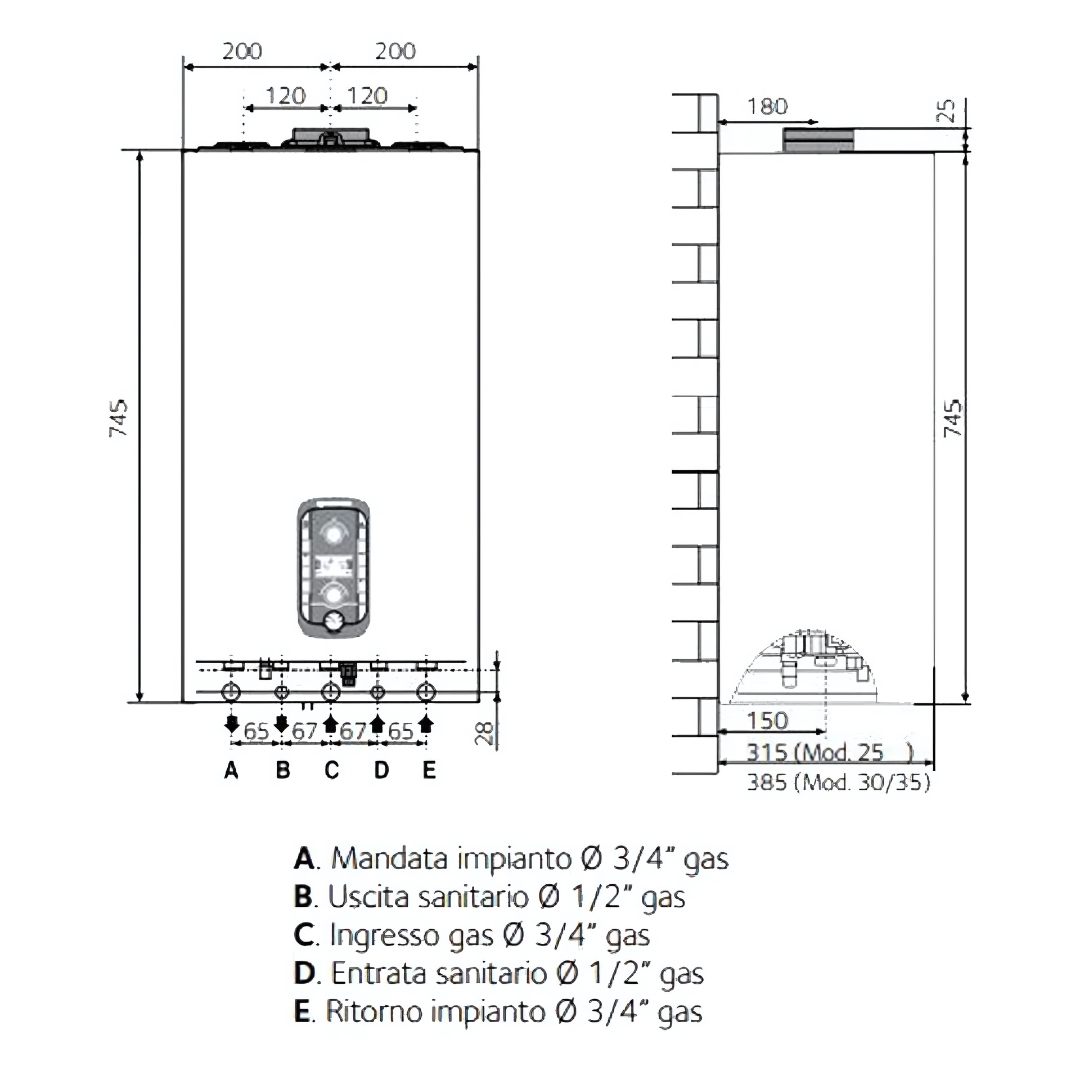 Compatibilità scarichi fumi: 80, 60 e 50 mm